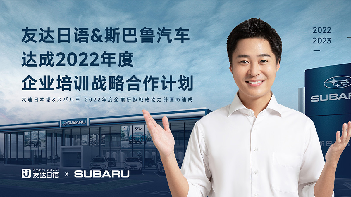 近日,友达日语和斯巴鲁技术(北京)有限公司达成企业合作伙伴关系,这也是继丰田(中国)、丰田投资、联想集团(Lenovo)等世界500强企业后,友达日语再次成为世界500强品牌企业指定日语培训机构!